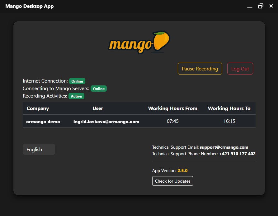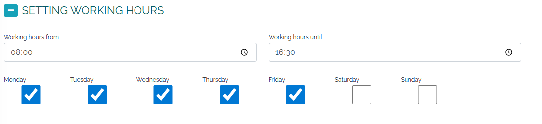 Ein weiterer wichtiger Aspekt bei MDA ist die Festlegung der Arbeitszeiten . Wenn Sie beispielsweise von 8:00 bis 16:30 Uhr arbeiten, legen Sie diese in den persönlichen Einstellungen Ihres CRM-Systems (Mango) fest. Entsprechend dieser Einstellung startet und stoppt MDA dann automatisch im Hintergrund Ihres Computers innerhalb der festgelegten Arbeitszeiten.