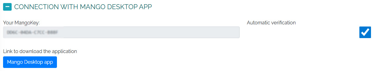 Sie können die Mango Desktop App (MDA) hier kostenlos herunterladen: https://cdn.crmango.com/files/mda/MDA_setup.zip. Den Verbindungsschlüssel für Mango und MDA finden Sie unter Einstellungen → Meine Einstellungen → Verbindung zur Mango Desktop App. Wie Sie im Bild unten sehen, können Sie in diesem Bereich auch die Anwendung selbst herunterladen und Ihren Verbindungsschlüssel finden. Wichtig ist außerdem die Option „Automatische Verifizierung“. Jeder Benutzer kann selbst entscheiden, ob diese Option aktiviert sein soll. Das bedeutet, dass alle Aktivitäten, die MDA aufzeichnet und an Mango sendet, automatisch verifiziert werden. So kann beispielsweise Ihr Vorgesetzter diese Aktivitäten einsehen und anzeigen. Alternativ werden die Aktivitäten zwar in Mango gesammelt, aber erst nach der Verifizierung anderen Benutzern angezeigt. Wenn Sie also arbeiten, öffnen Sie am Ende des Tages Mango, gehen zum Bereich „Aktivitäten“ und verifizieren dort alle Aktivitäten, die in Ihrem Arbeitsbericht angezeigt werden sollen. Nicht verifizierte Aktivitäten können Sie einfach löschen.