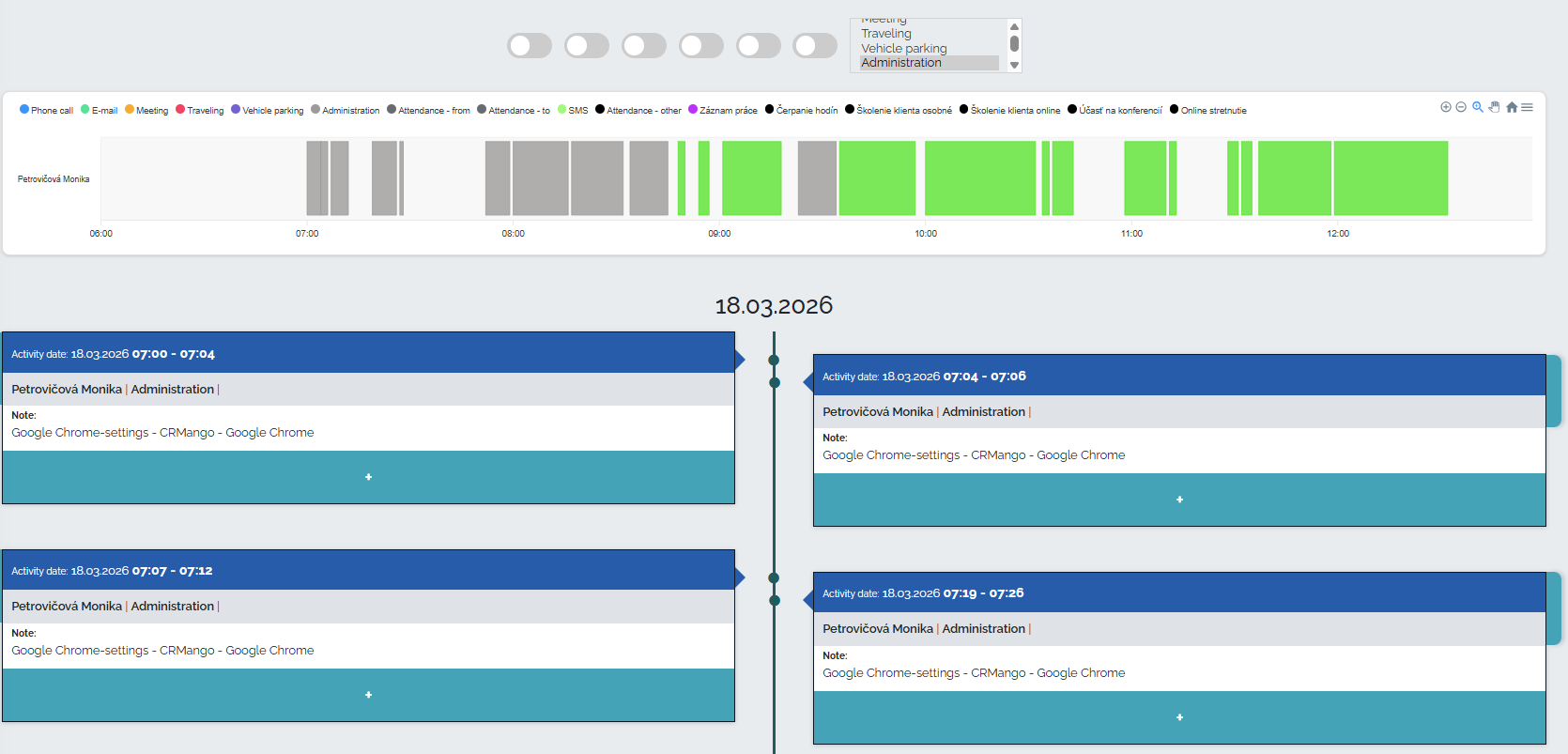 Anschließend können Sie mit einem Klick einen übersichtlichen Bericht aus den verifizierten Aktivitäten in einer Zeitleiste erstellen , einschließlich einer grafischen Darstellung der einzelnen Aktivitäten.