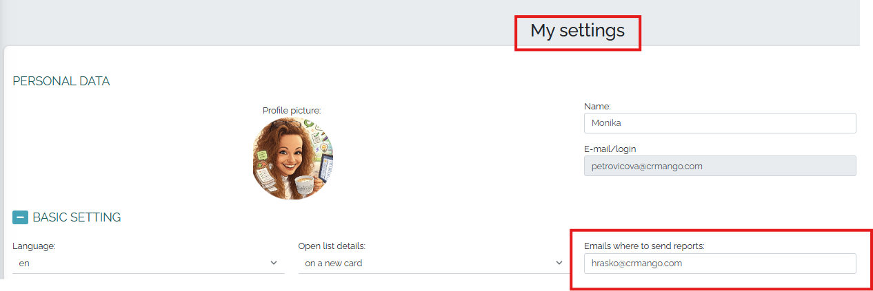 Sie können diesen Bericht zusammen mit einer grafischen Darstellung des Zeitablaufs direkt aus CRM Mango per E-Mail an die Unternehmensleitung senden. Klicken Sie dazu einfach auf die Schaltfläche „Bericht senden“. In Ihren persönlichen Einstellungen können Sie den Empfänger für den Bericht festlegen. Sie können auch mehrere E-Mail-Adressen gleichzeitig auswählen; trennen Sie diese einfach durch Kommas.