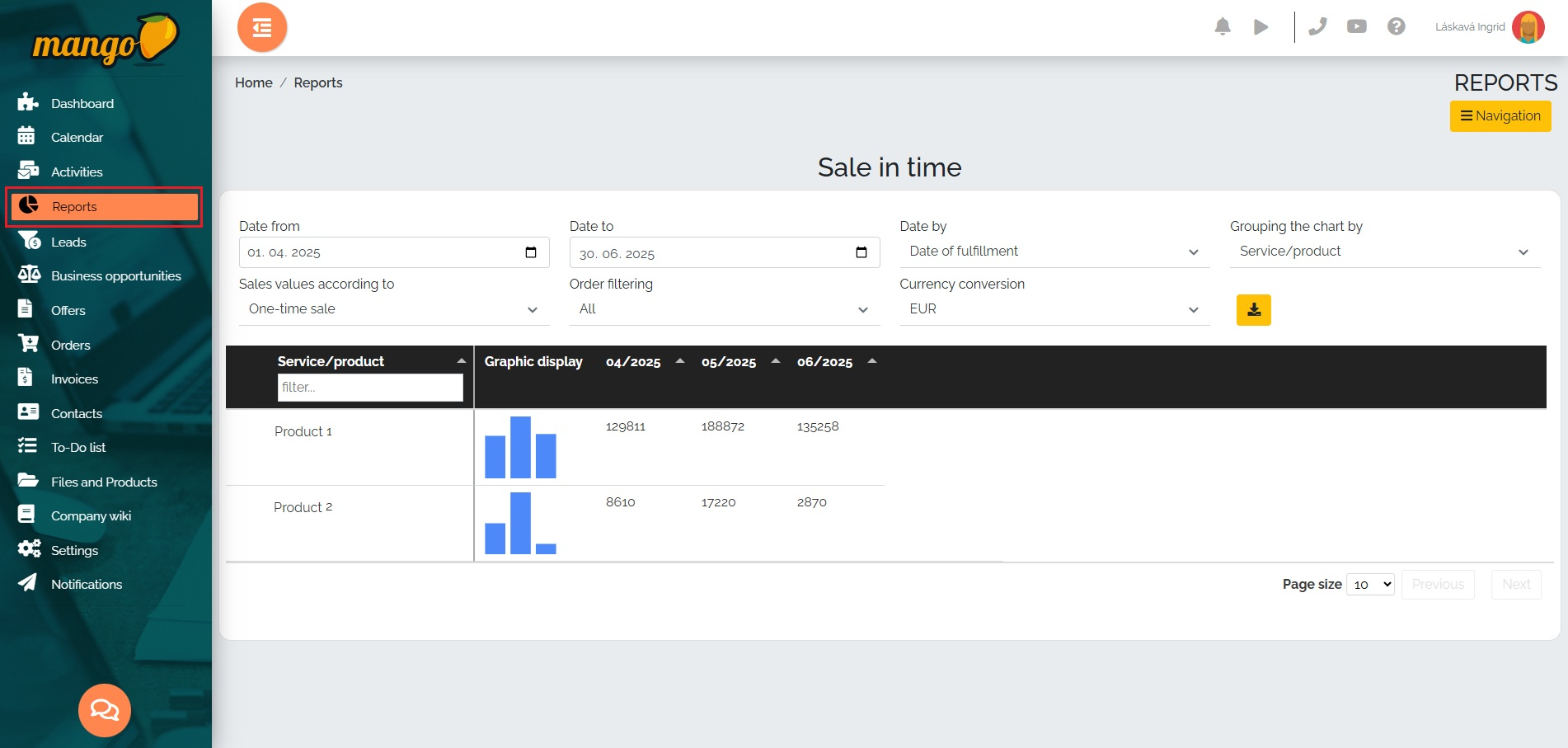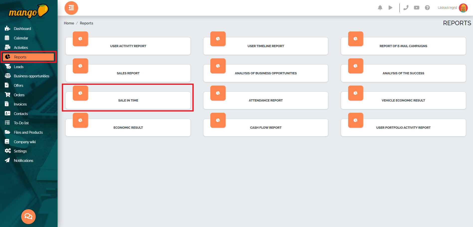 Report s názvom Predaj v čase môžeme nájsť v sekcii Reporty: