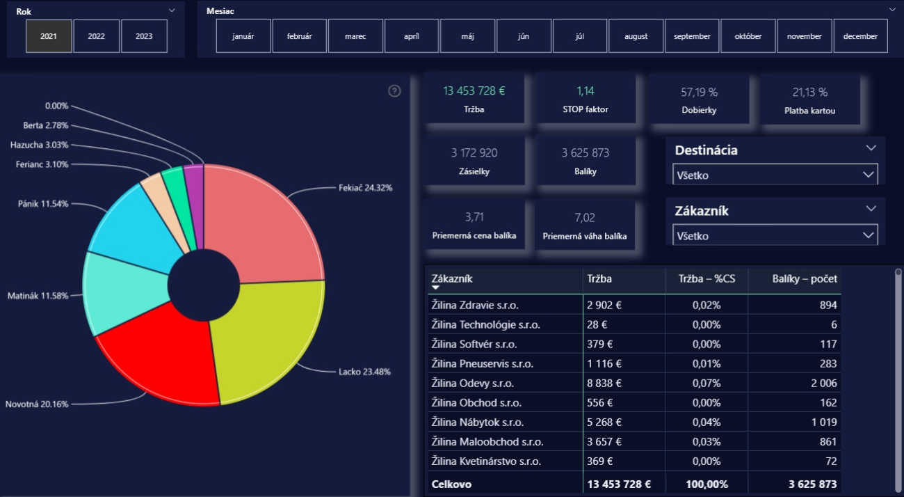 Nižšie vidíte konkrétne príklady dashboardov a vizualizácií, ktoré Voyager vytvoril pre svojich klientov. Každý z nich je prispôsobený tak, aby spĺňal individuálne potreby firiem.