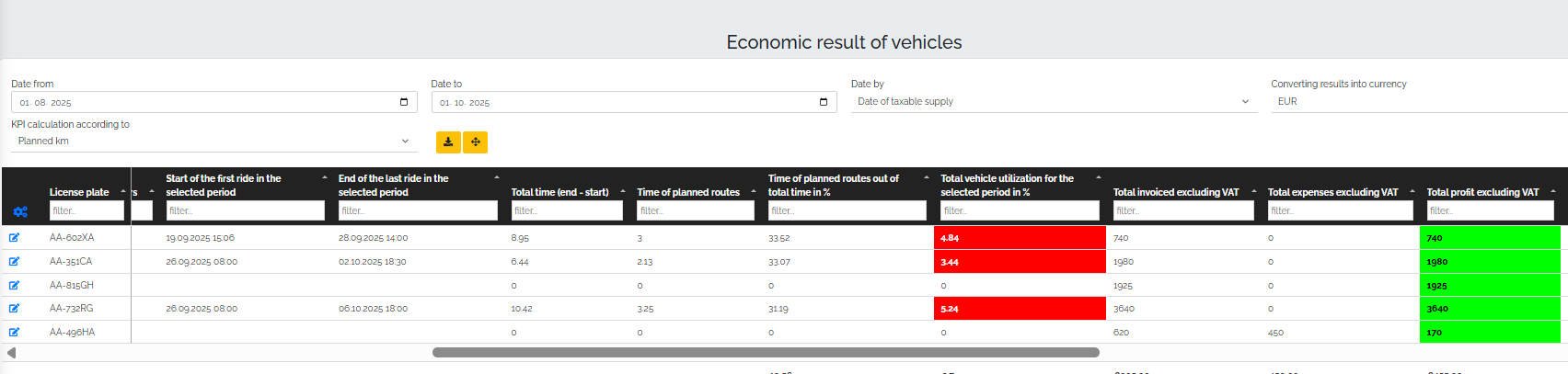 Report poskytuje rýchly a zreteľný pohľad o fungovaní firmy – ukazuje vyťaženosť a využitie vozidiel, nákladovosť a možnosti efektívnejšieho využitia vozového parku. Zároveň odhaľuje aj to, ktoré vozidlá sú nadmerne zaťažované. Umožňuje nám posúdiť, či je cenová politika správne nastavená a prepravy sú ziskové vzhľadom na náklady na vozidlá a vodičov.